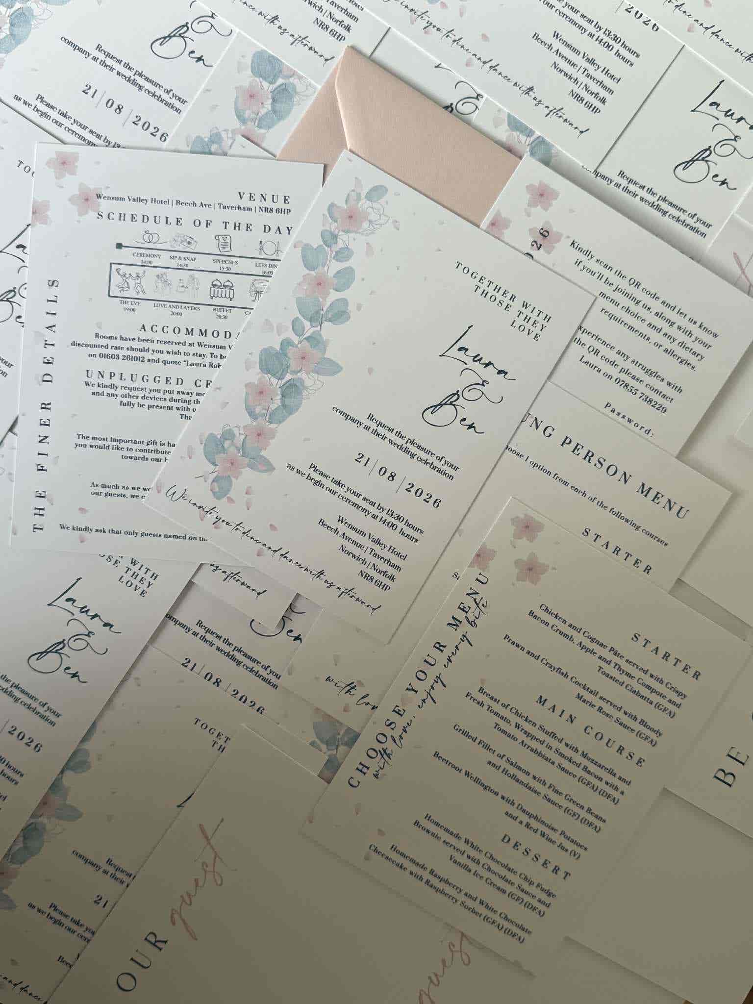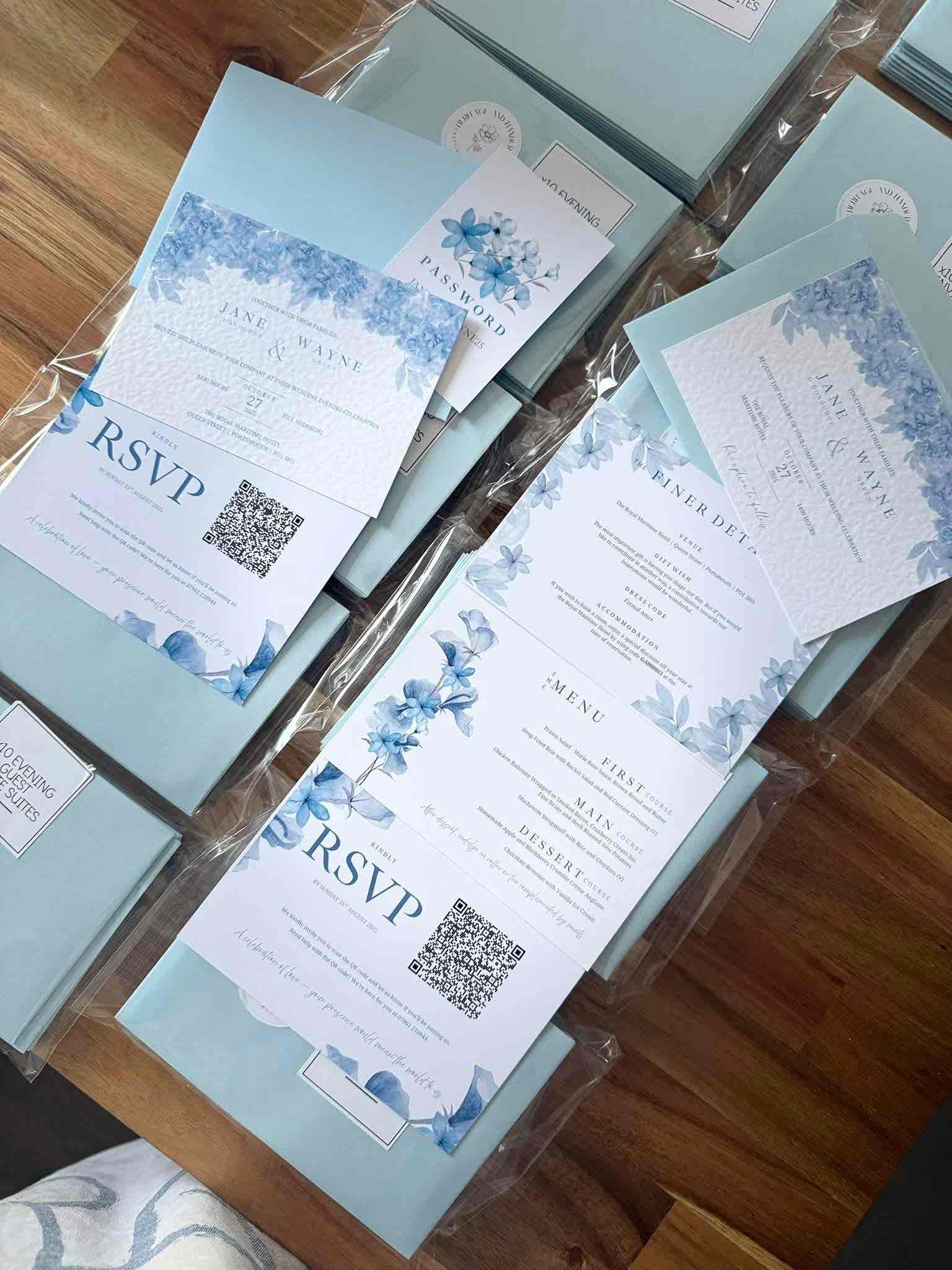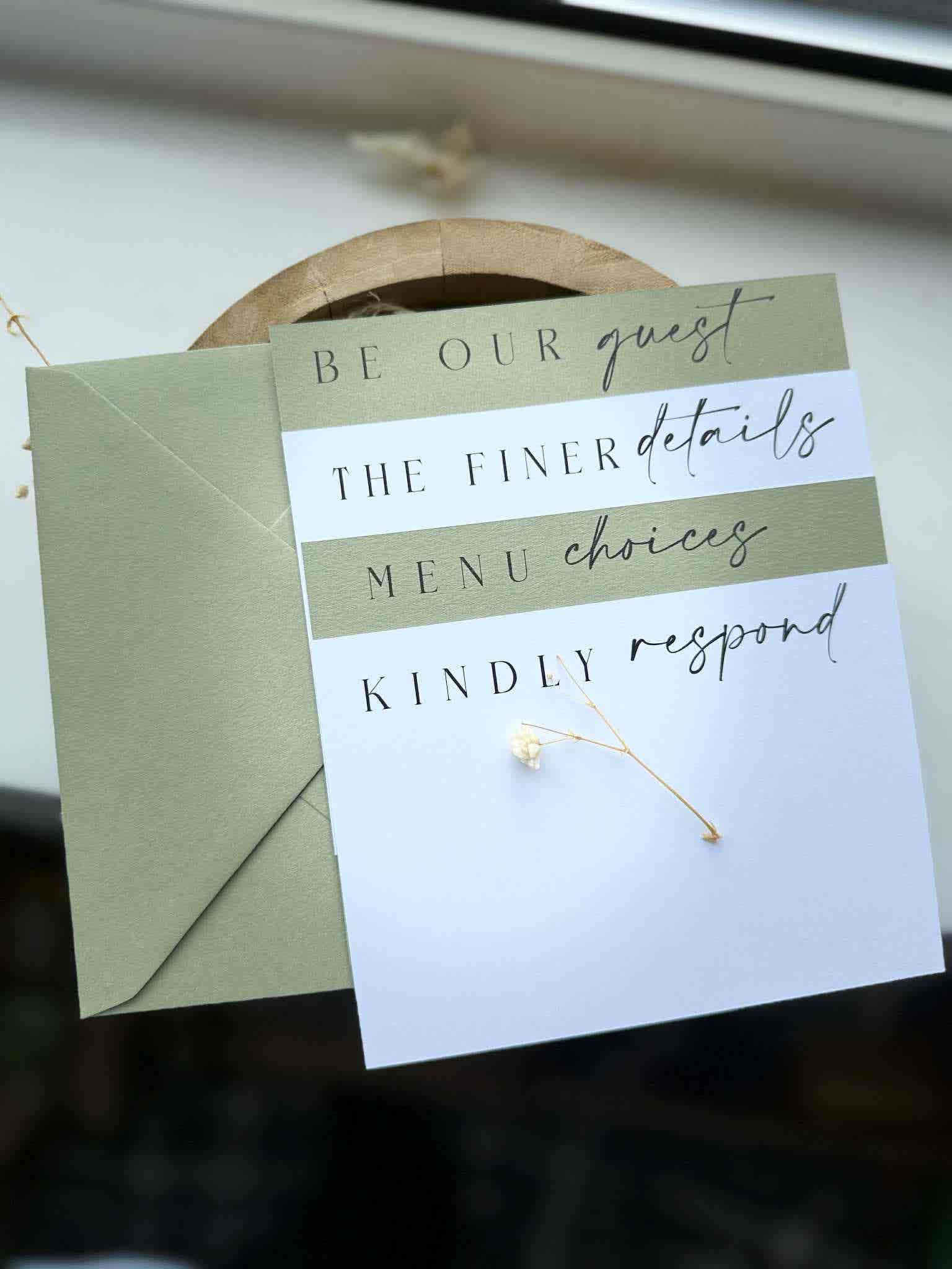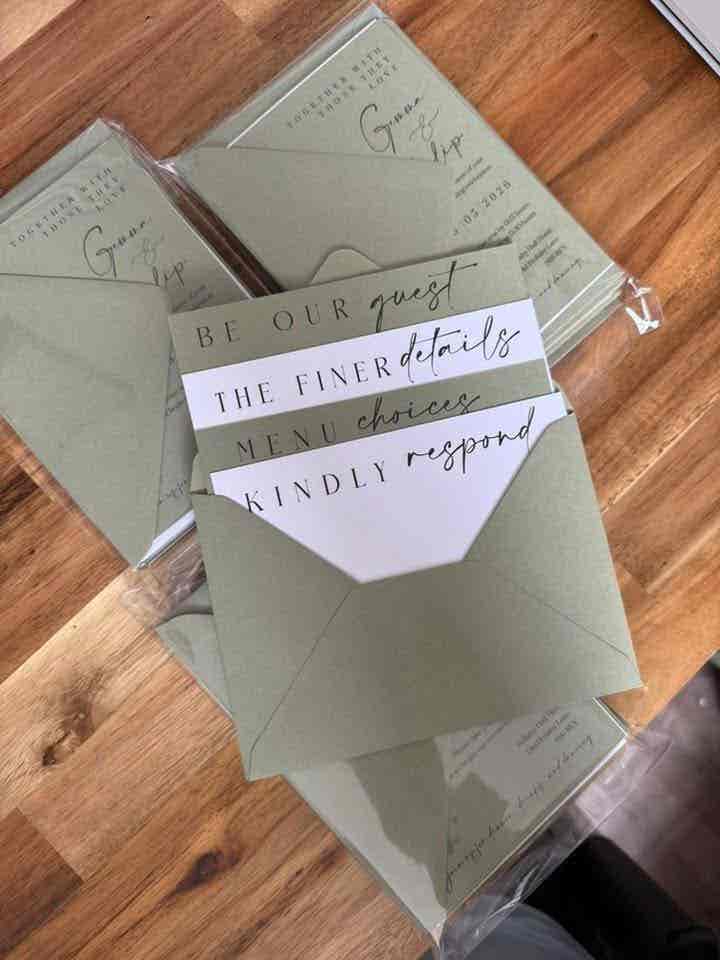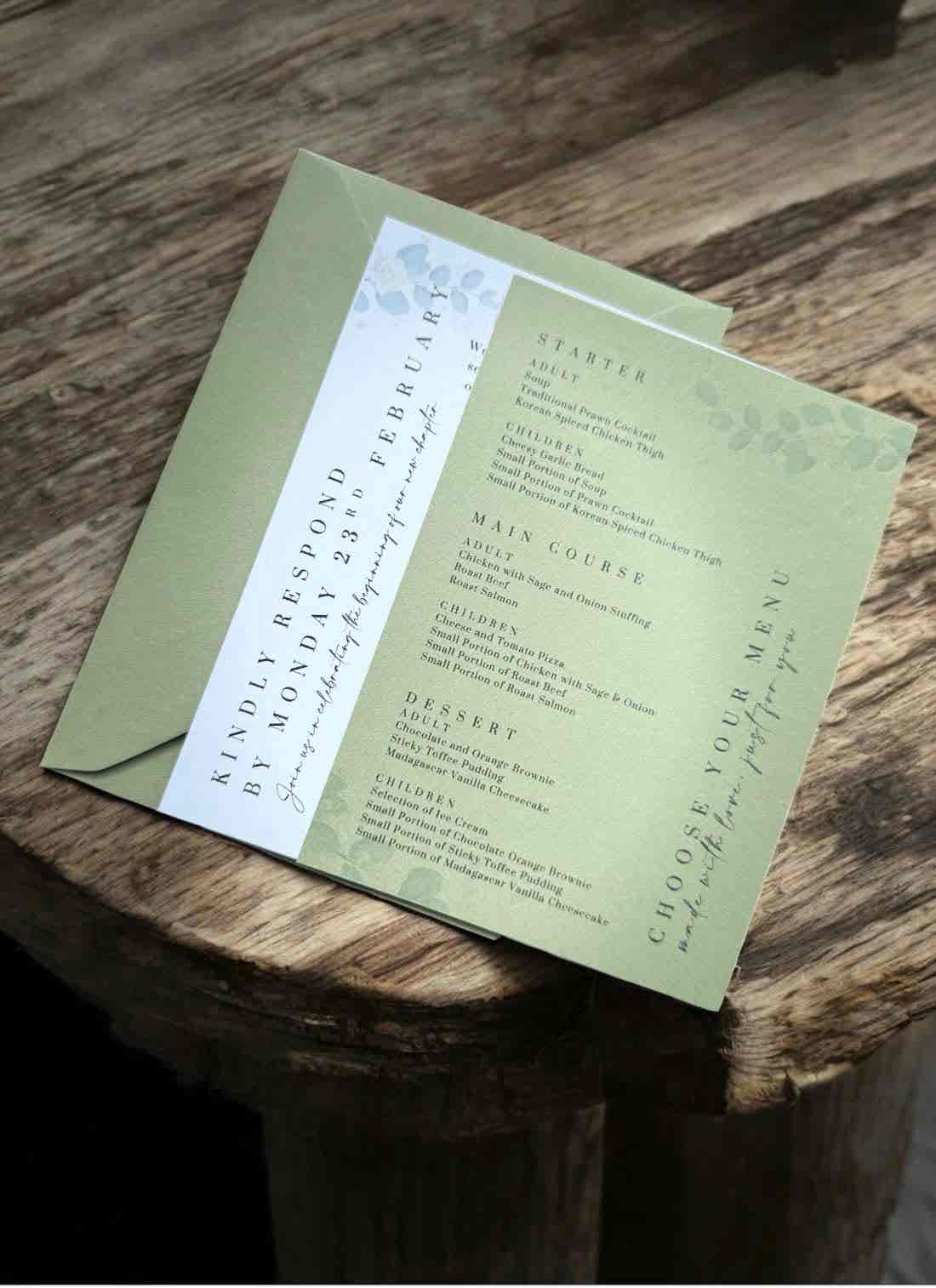 • Two different coloured cards to perfectly complement your wedding colours or theme