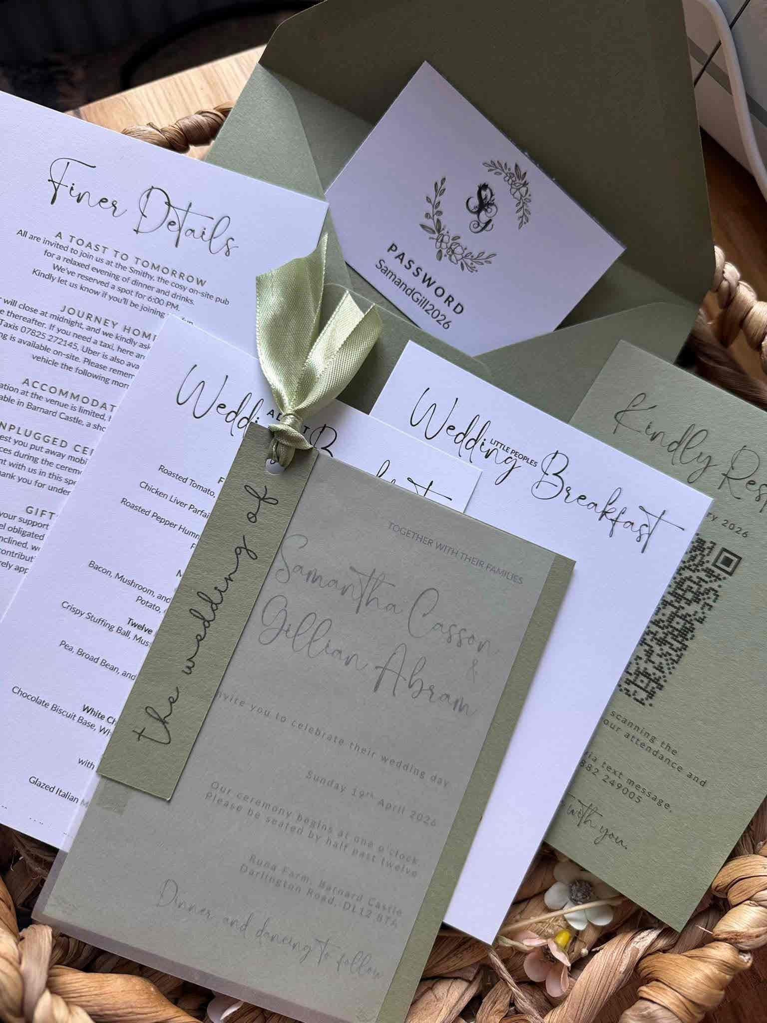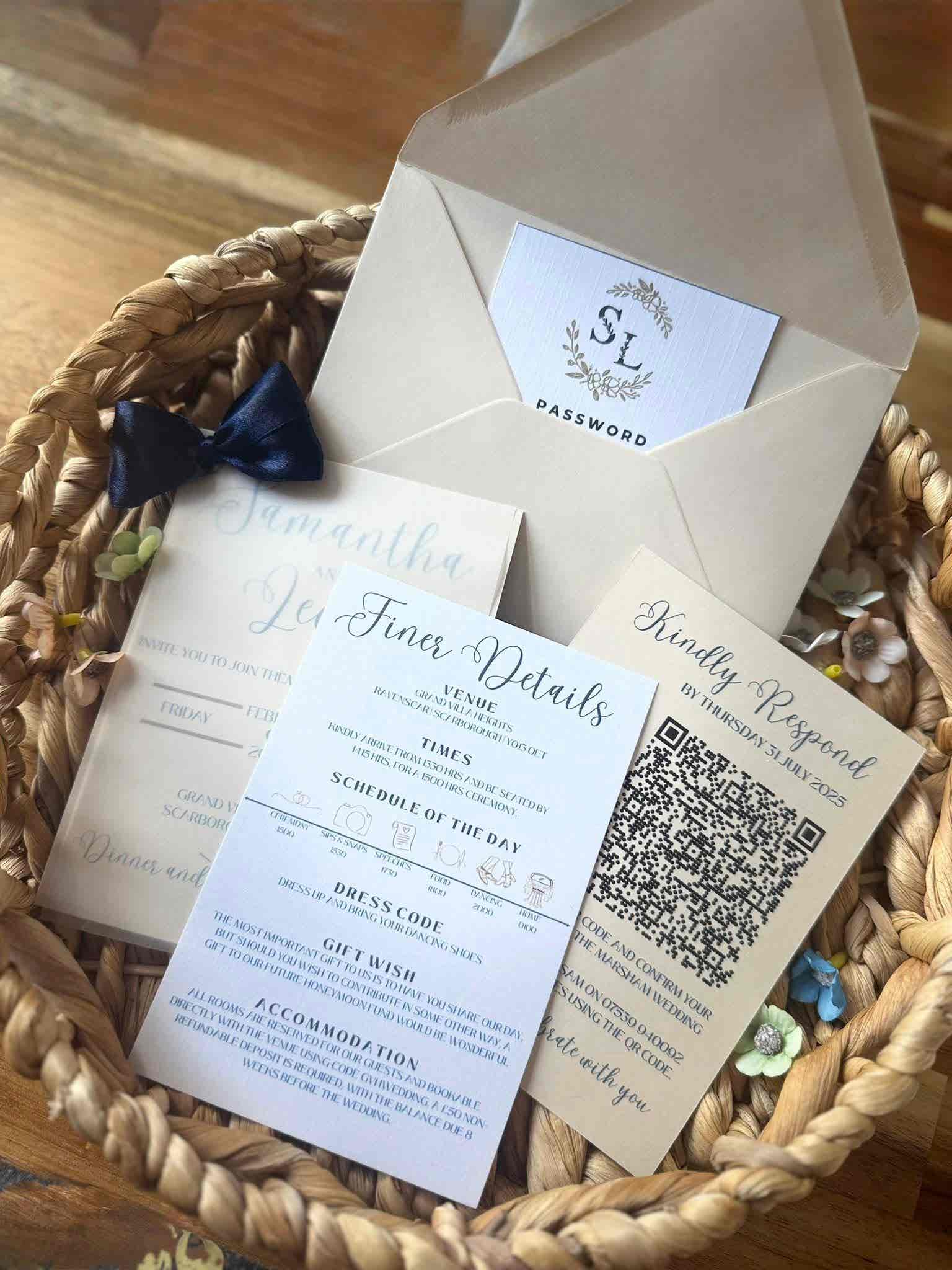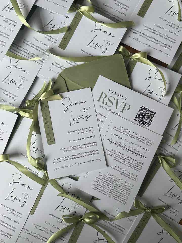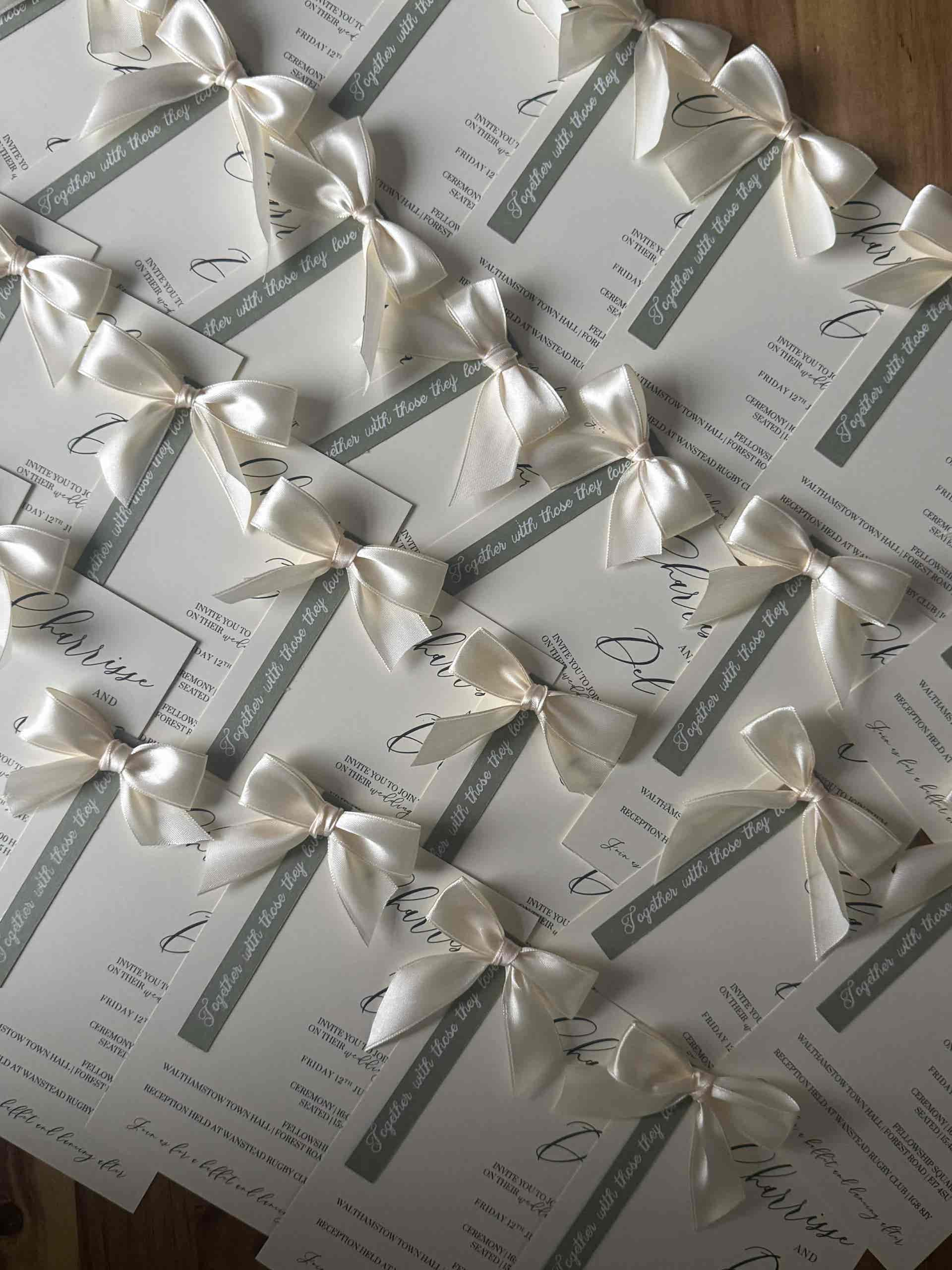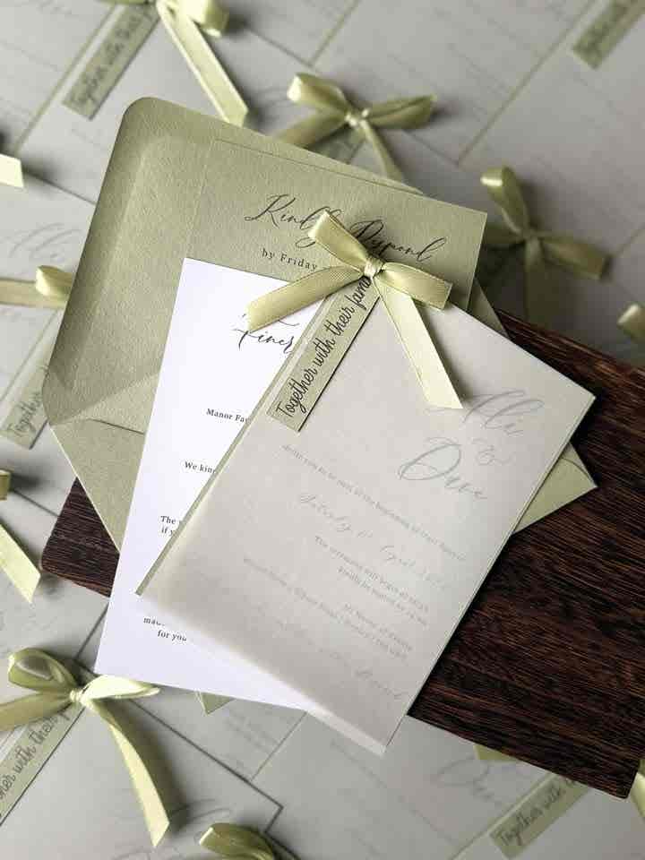 Introduce your wedding with unparalleled elegance using our Signature Collection Wedding Invite Suite from Heritage and Handcrafts. Each suite is carefully curated to provide a complete, bespoke stationary experience, featuring a main invitation, exquisite finer detailing, and your choice of optional menu card and RSVP card, all beautifully presented with a ribboned satin bow. Each suite also includes a coordinating envelope, ready for your guests.
