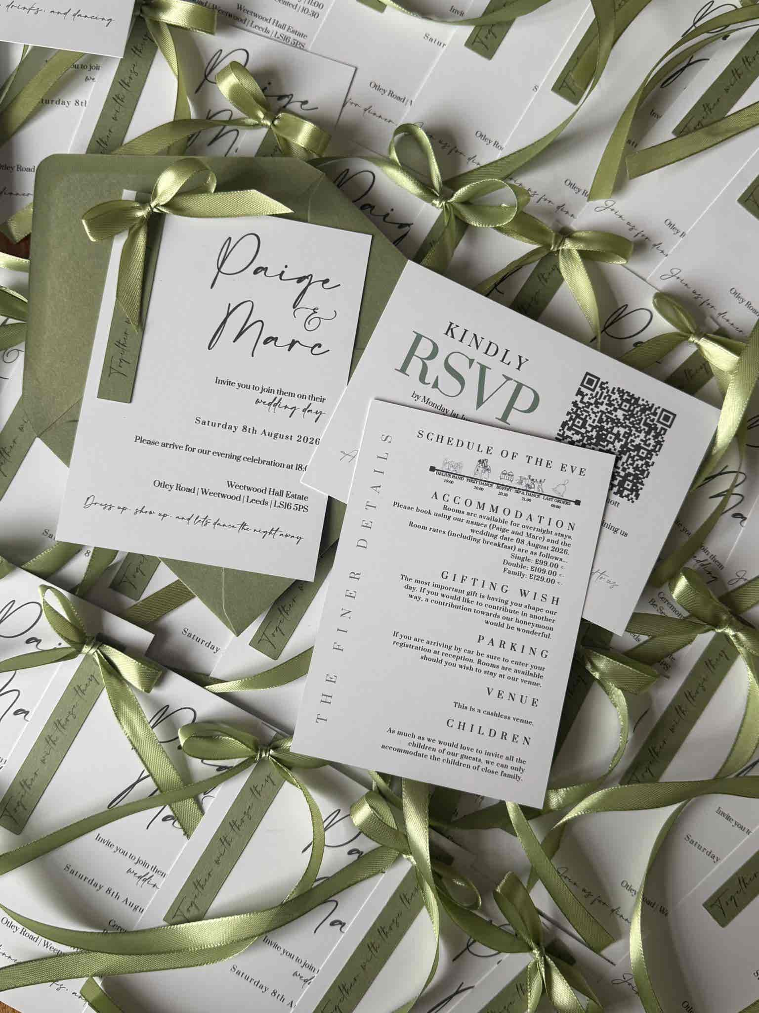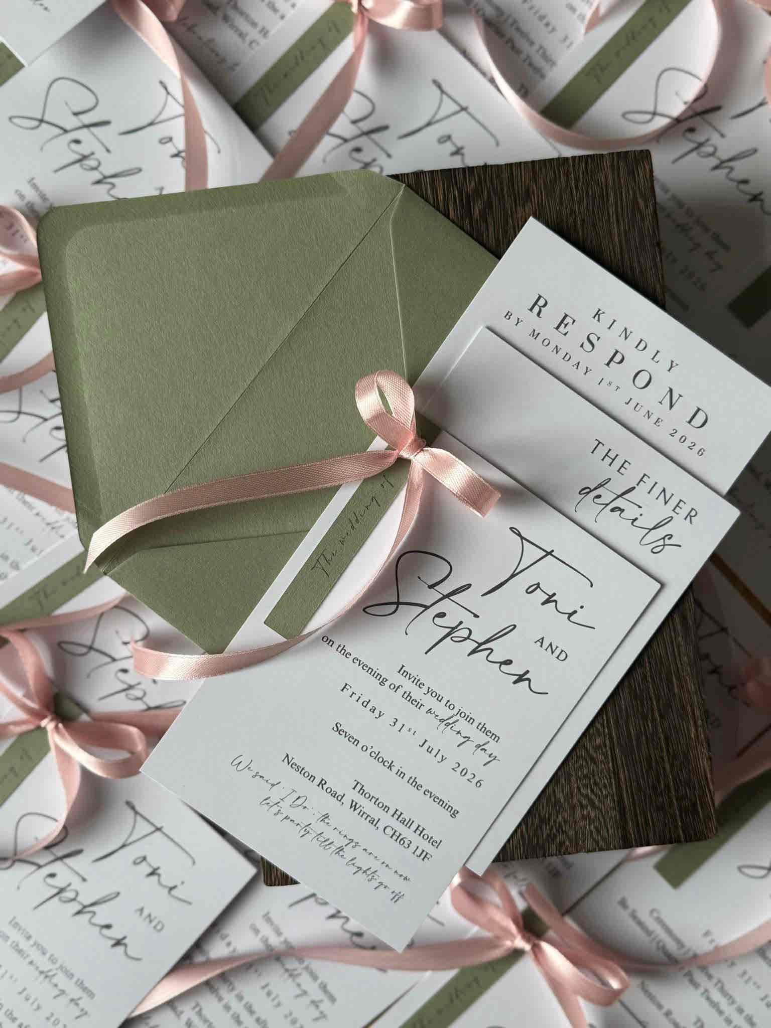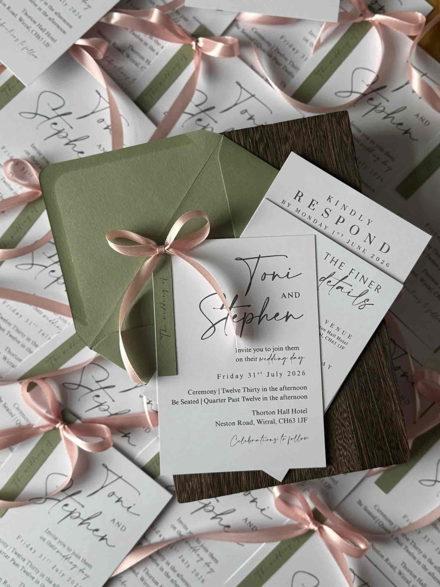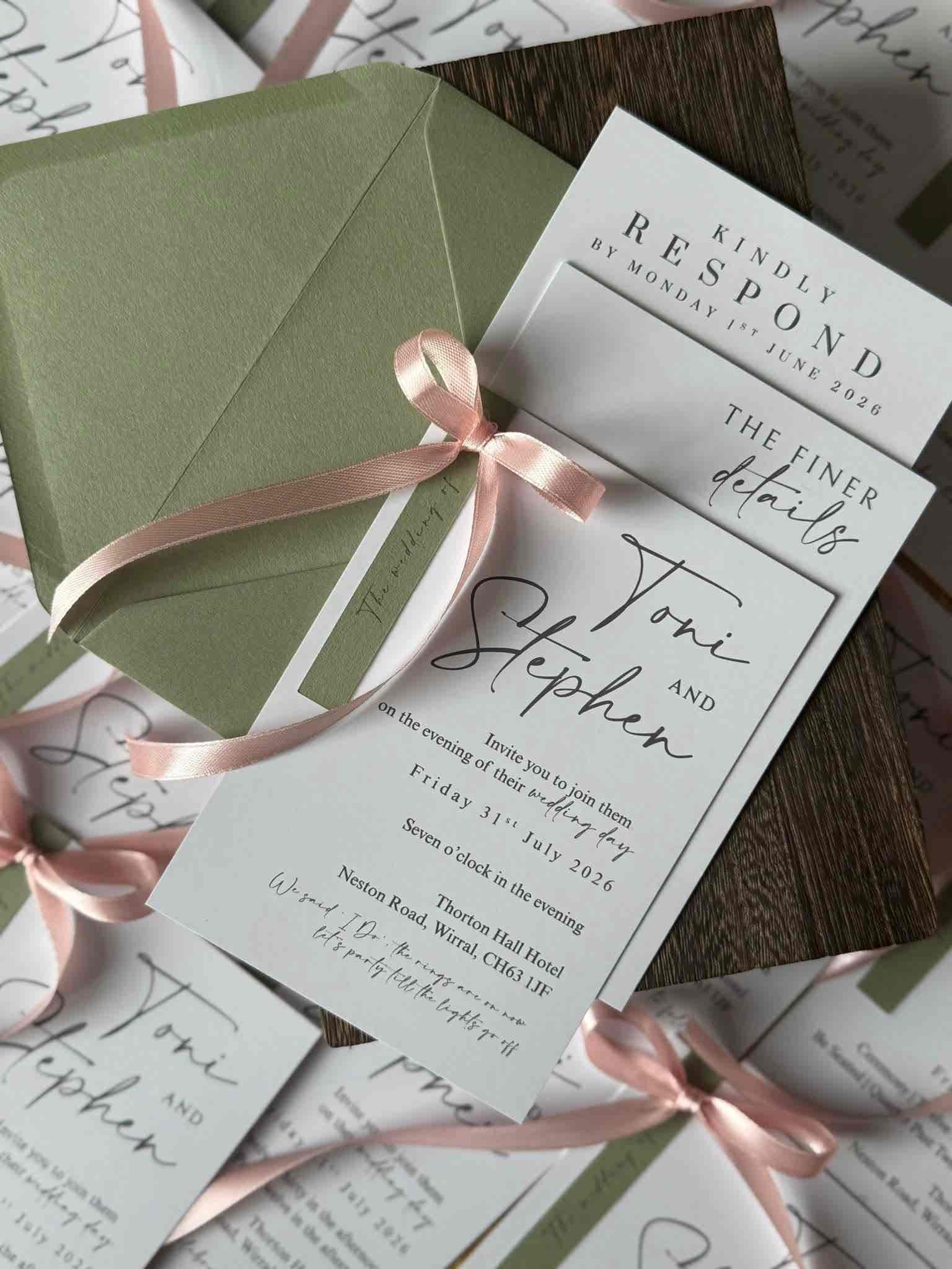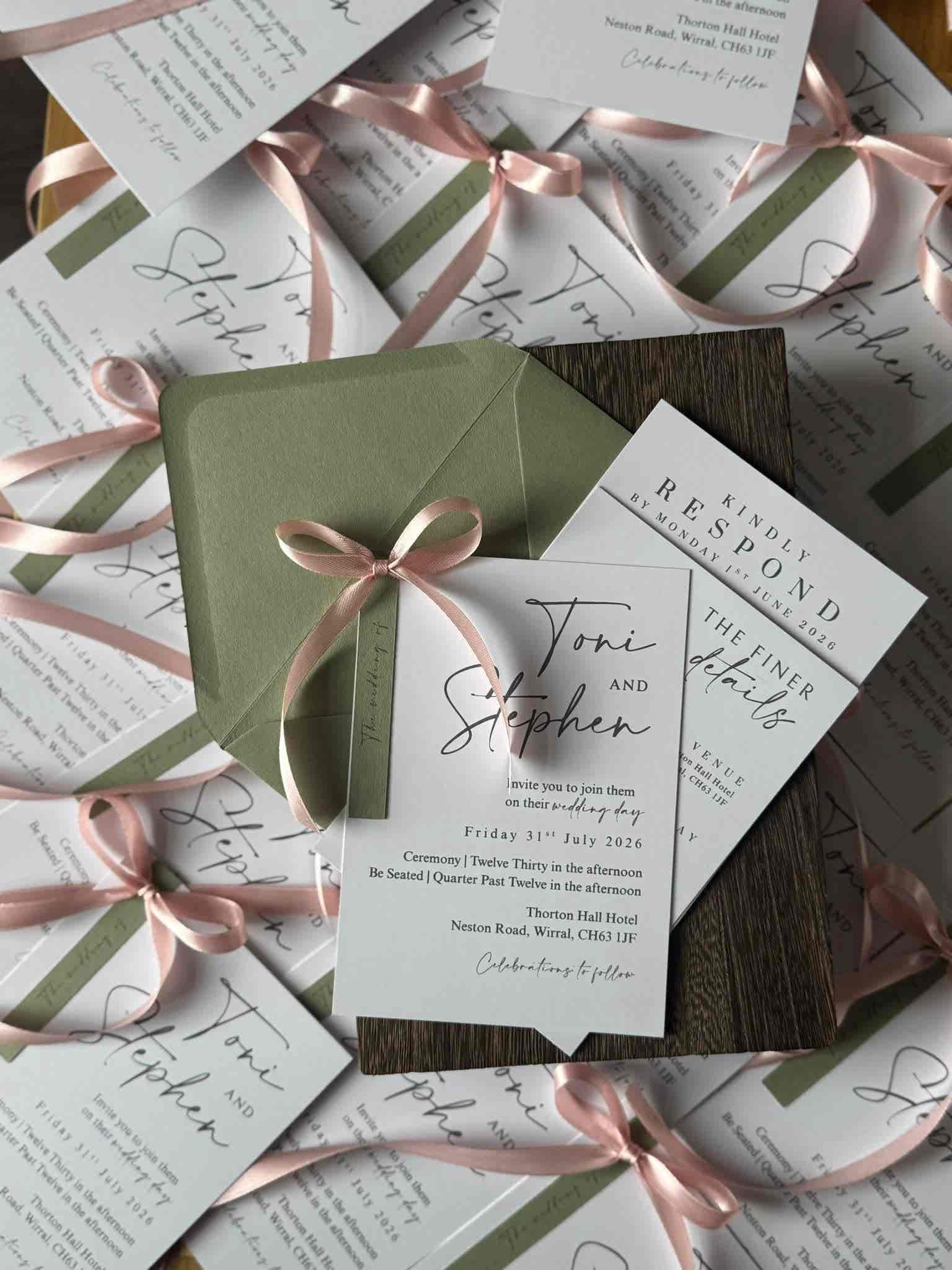 Introduce your wedding with unparalleled elegance using our Signature Collection Wedding Invite Suite from Heritage and Handcrafts. Each suite is carefully curated to provide a complete, bespoke stationary experience, featuring a main invitation, exquisite finer detailing, and your choice of optional menu card and RSVP card, all beautifully presented with a ribboned satin bow. Each suite also includes a coordinating envelope, ready for your guests.