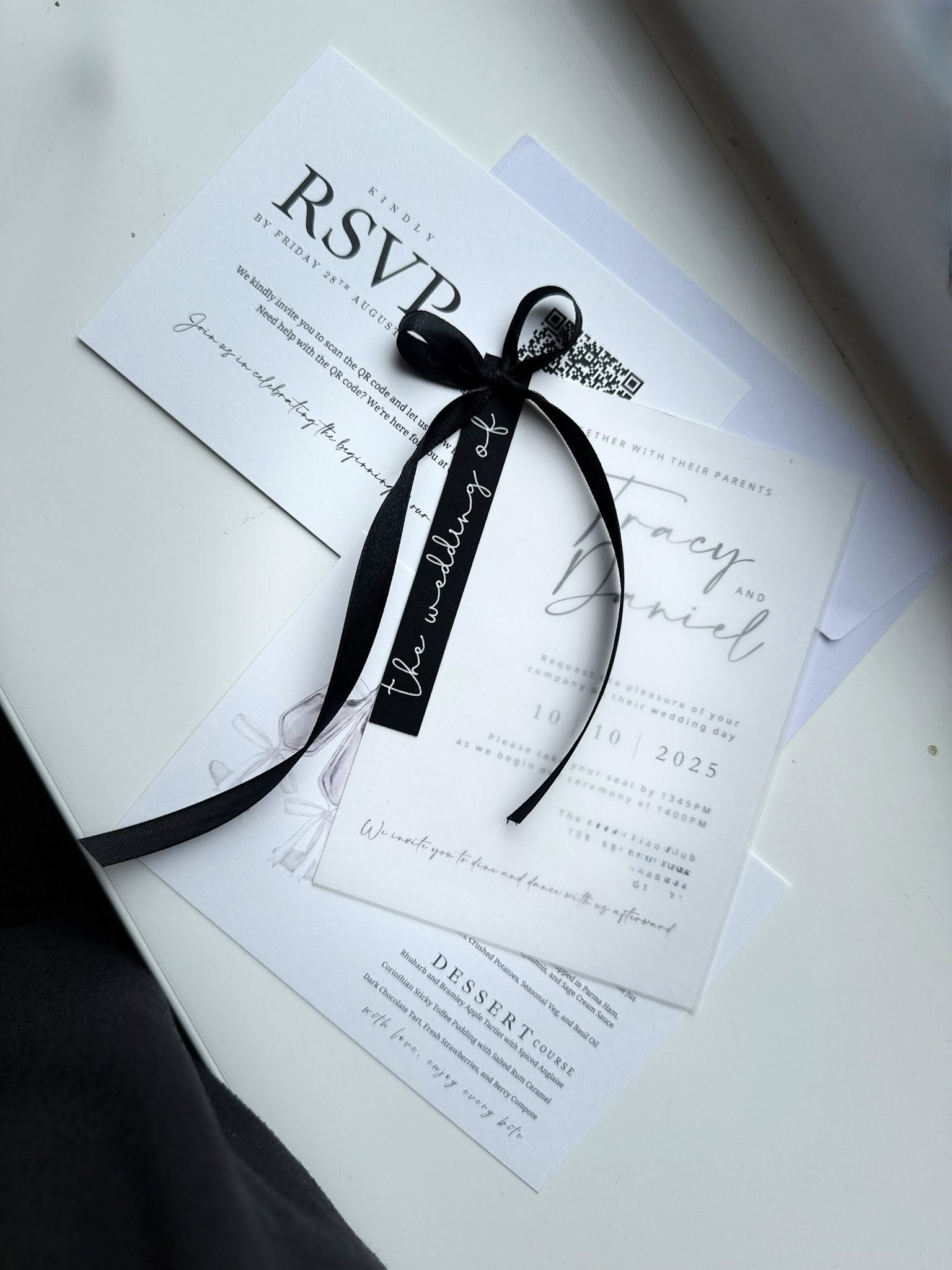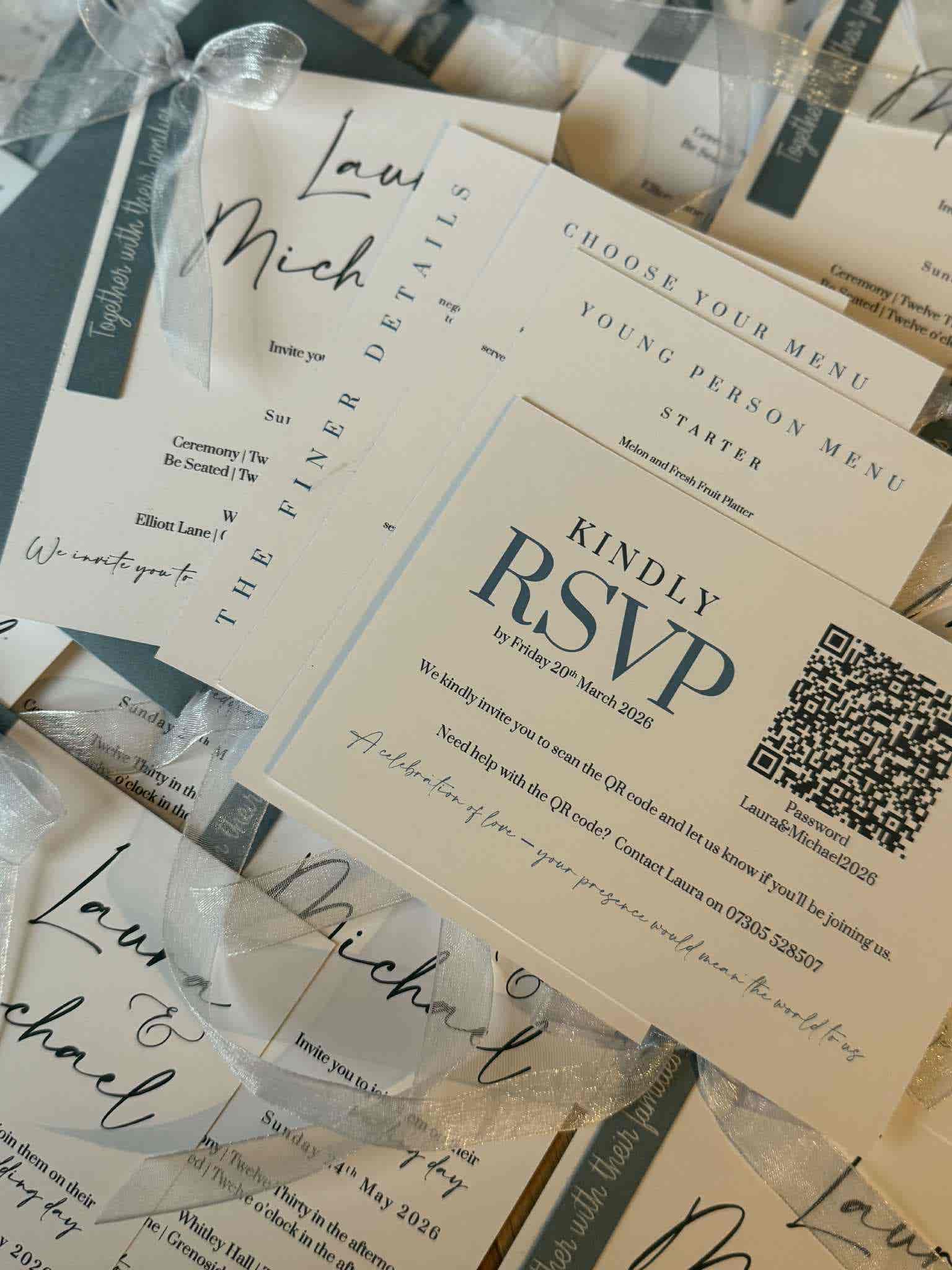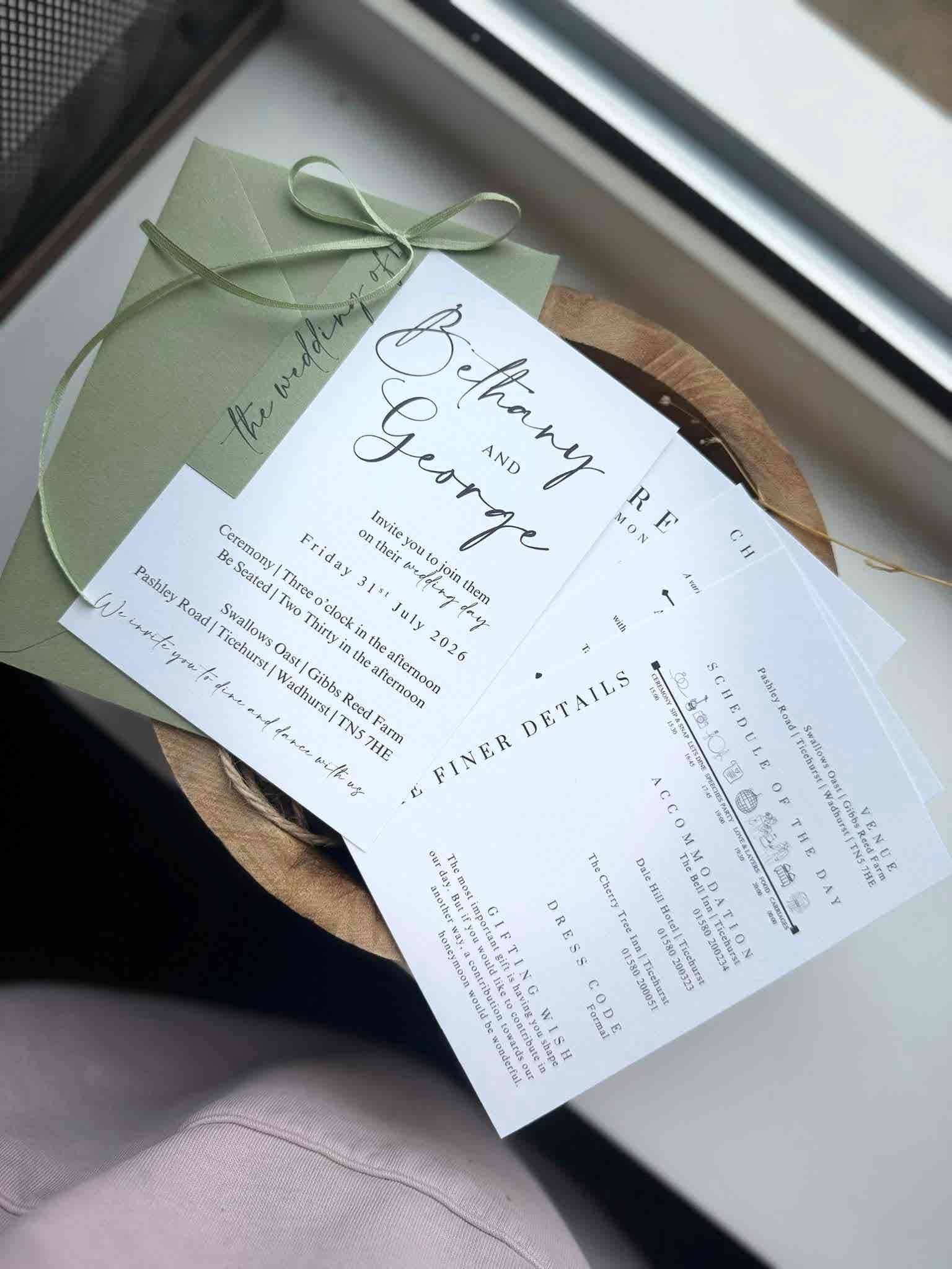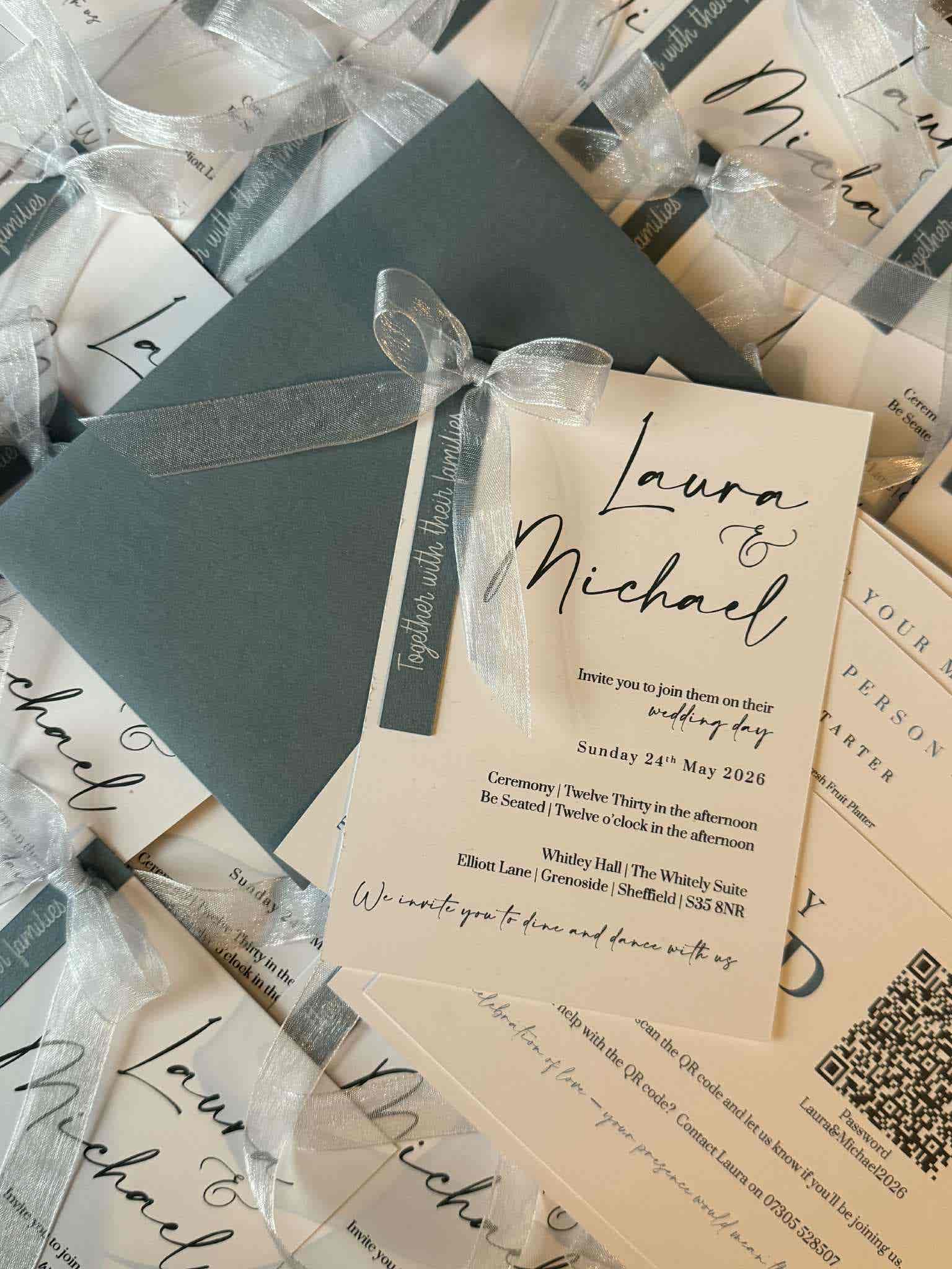 Introduce your wedding with unparalleled elegance using our Signature Collection Wedding Invite Suite from Heritage and Handcrafts. Each suite is carefully curated to provide a complete, bespoke stationary experience, featuring a main invitation, exquisite finer detailing, and your choice of optional menu card and RSVP card, all beautifully presented with a ribboned satin bow. Each suite also includes a coordinating envelope, ready for your guests.